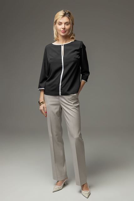 Елегантна блуза з м’якої віскозної тканини, ідеальний вибір для створення ніжного та стильного образу. Легка, приємна до тіла тканина забезпечує комфорт протягом усього дня та красиво лягає по фігурі. Рукав довжиною 3/4 додає моделі універсальності- блуза підходить як для офісу, так і для повсякденних або святкових образів. Горловина та низ рукава окантовані руліком, що надає виробу завершеного, делікатного вигляду.