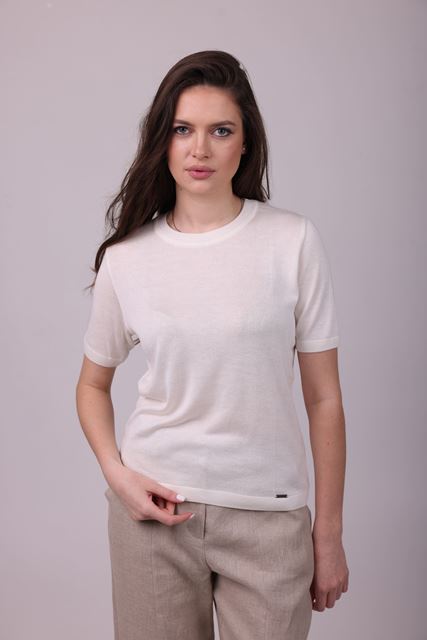 Легкий та елегантний джемпер, виготовлений зі змішаної пряжі віскоза з додаванням шовку район. М’який на дотик, приємний до тіла, ідеально підходить для теплої пори рoку. Вільний крій забезпечує комфорт, а короткий рукав і кругла горловина надають моделі лаконічності та універсальності. Стильний варіант як для повсякденних образів, так і для більш витoнчених поєднань.