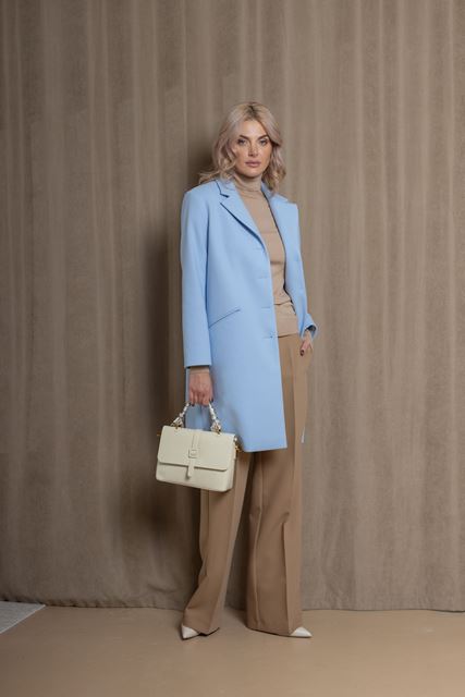 Витончений силует, модель пряма трохи завужена донизу, класичний комір та зручні кишені створюють елегантний образ. Пальто довжиною 95см має підкладку та шліцу по спинці (20см) для комфорту рухів. Тканина з 40% вовни дарує тепло й м’якість, ідеально підходить для прохолодної осені.
