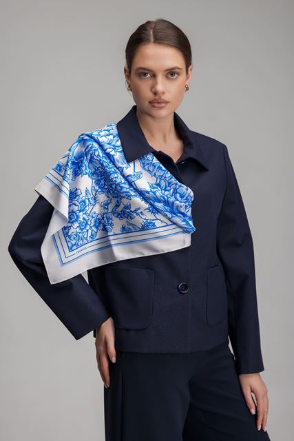 Жакет має підкладку, що забезпечує комфорт у носінні та бездоганну посадку. Накладні кишені, круглий комір додають виробу завершеності.