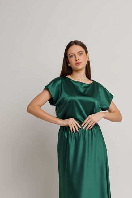 Блуза вільного крою зі спущеним плечем, має вільний крій. Блуза ідеально підійде для офісного стилю, а також для повсякденного носіння. Вона зручна і практична, а також виглядає дуже стильно.