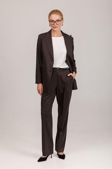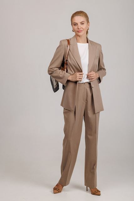 Прямі штани візуально витягають зріст, відмінно приховують недоліки, допомагають відчувати себе комфортно і впевнено, і в цілому підходять будь-якому типу фігури. Штани з защипами по переду, присутні бокові кишені.