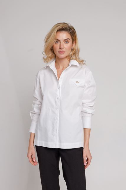 Сорочка оверсайз має довгий рукав з широкими манжетами, що додають елегантності. Спереду сорочка коротша за спину, а по боках є розрізи, що забезпечують додатковий комфорт та свободу рухів. Ідеальний вибір для створення модного та невимушеного образу.