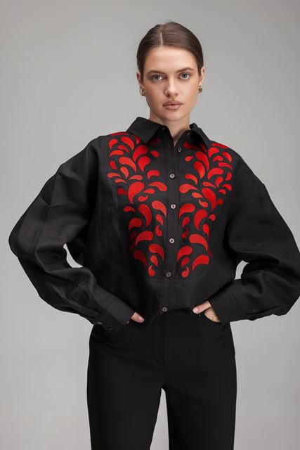 Стильна жіноча сорочка, виготовлена зі 100% натурального льону, поєднує в собі легкість, комфорт і продуманий дизайн. Оригінальна дизайнерська вишивка додає виробу виразності та неповторного характеру. Довгий рукав із манжетом підкреслює елегантність силуету, а кокетка по спинці забезпечує ідеальну посадку та акуратний вигляд. Ця лляна сорочка - гармонія природності й сучасного стилю, яка стане вдалим акцентом у будь-якому образі.