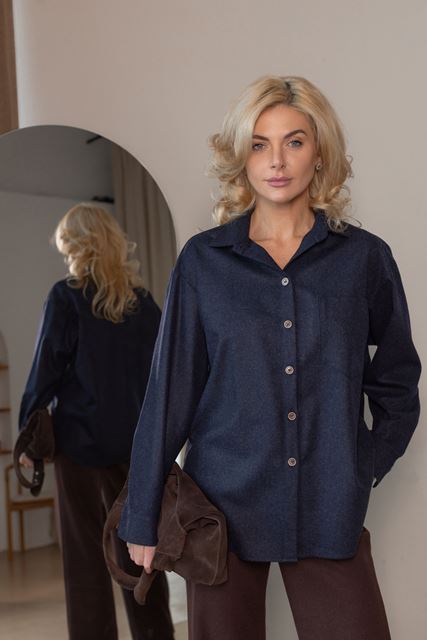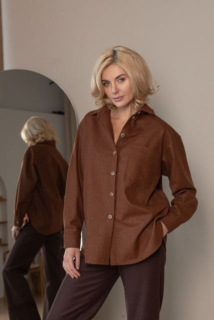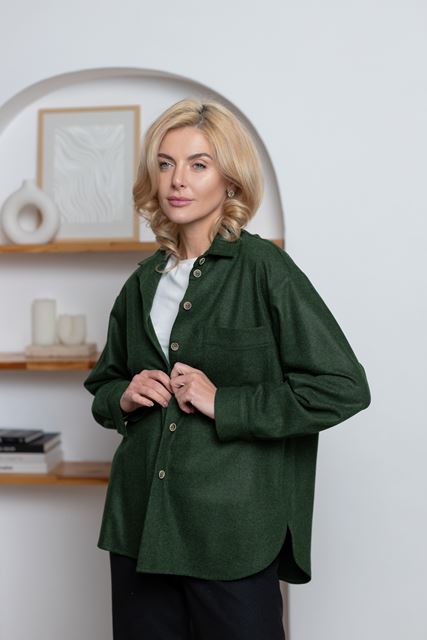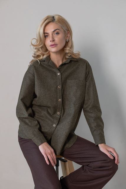 Вовняна сорочка вільного крою з застібкою ґудзики.